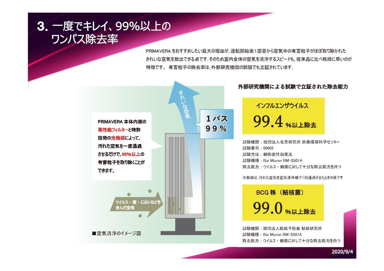 『美しい空気を作る』 空気清浄機プリマヴェーラシリーズの販売を開始いたします。今人気のサークルPRO OP-Z751Aは、機能美を追及した洗練されたフォルムで、360°効率よく集塵し、きれいな空気をサークルエアで送り出します。空気清浄機プリマヴェーラ、バイオミクロンはハイブリッド光触媒や酸化チタン光触媒を搭載し、タバコの臭い・花粉・PM2.5・ウイルスを清浄除去する空気清浄機です。病院・学校などの公共施設はもちろん戸建ての住宅設備としても今注目の商品です。